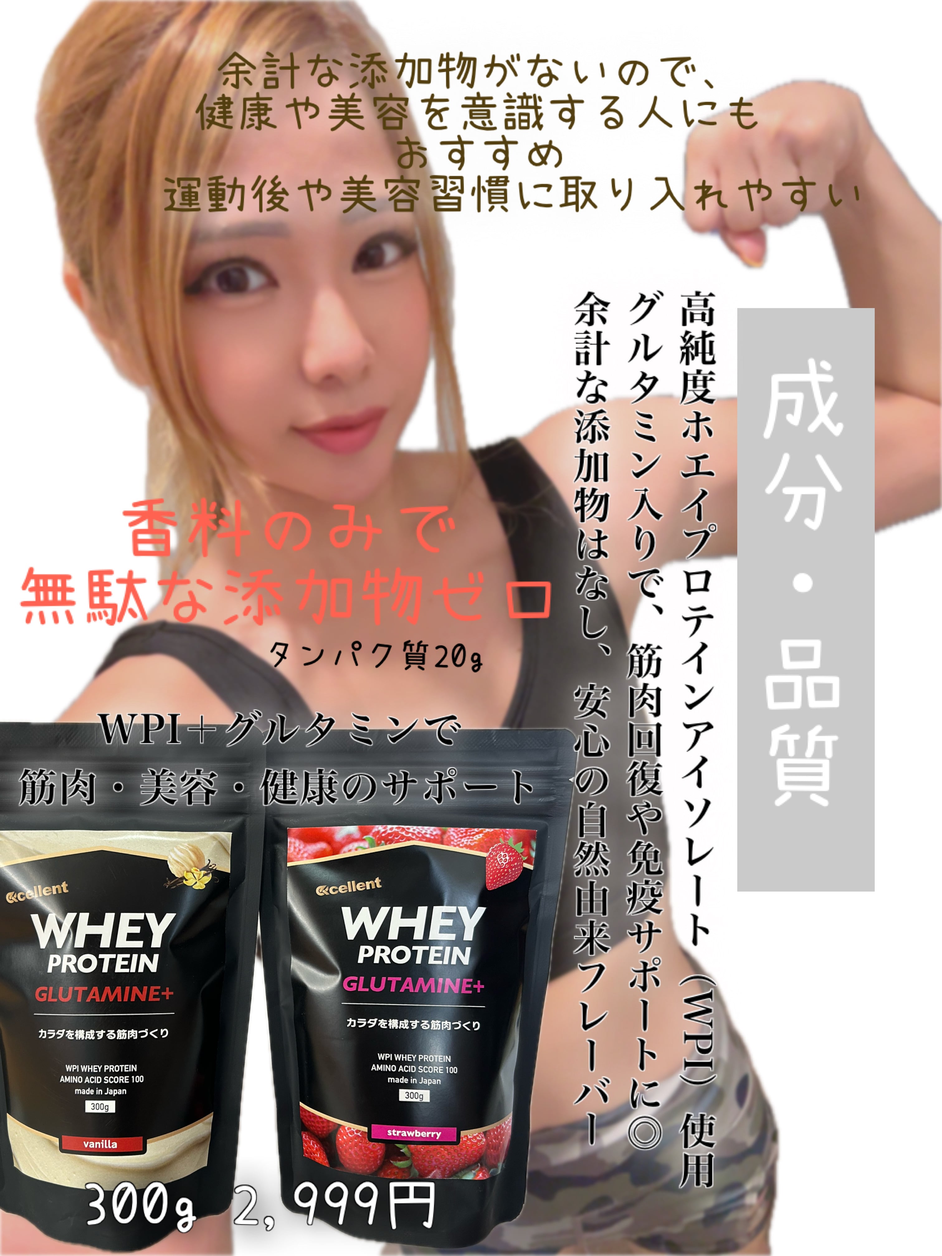 excellent ストロベリー味300g WPIホエイプロテイン グルタミンプラス