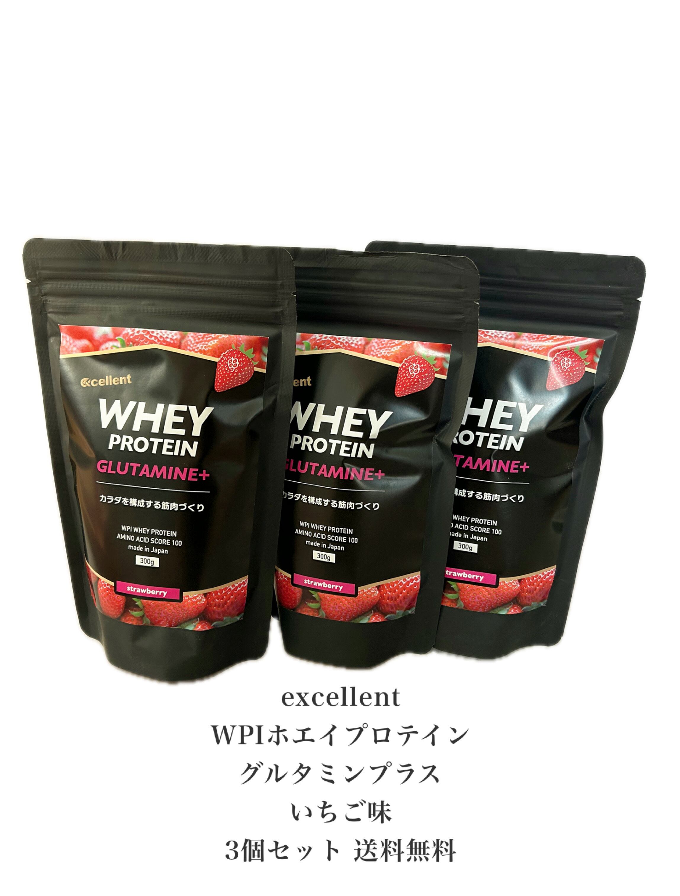 WPIホエイプロテイングルタミンプラス〈いちご味〉300g × 3